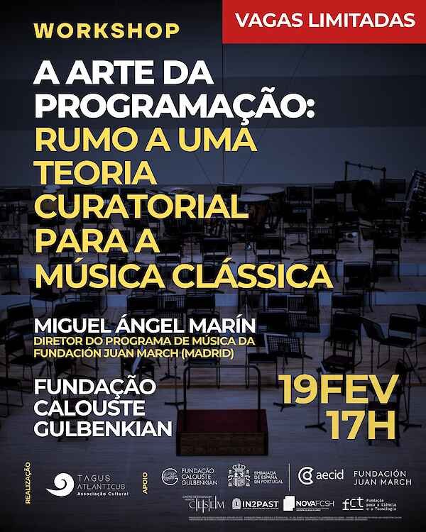 No panorama da música clássica, faz-se urgente pensar formatos de concerto inovadores, mas, surpreendentemente, continua a predominar a pesada herança das estruturas de concerto do século XIX. Este paradoxo pode ser atribuído, em parte, à falta de modelos inspiradores para a mudança. A convite da Tagus-Atlanticus Associação Cultural, o musicólogo e programador espanhol Miguel Angelo Marín irá apresentar um quadro teórico (em desenvolvimento) para a curadoria de concertos baseado em quatro tipos ideais, que oferecem uma abordagem flexível à programação. Objetivos:
