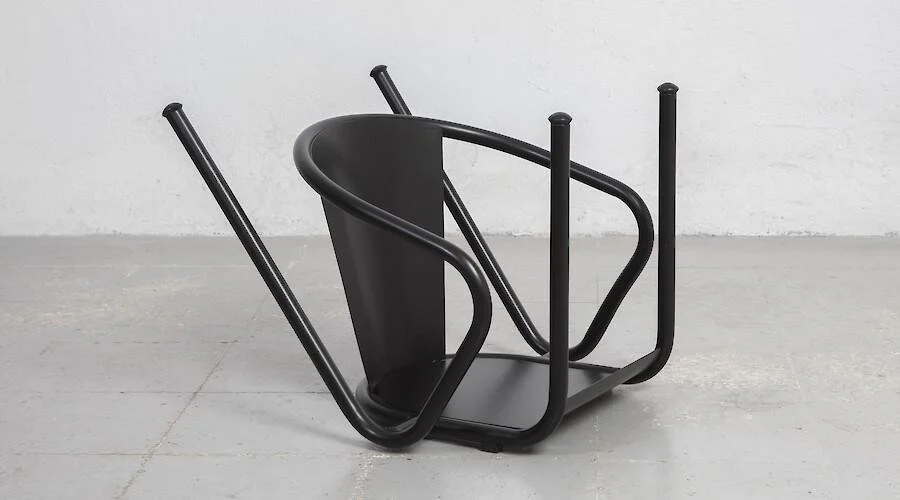 A Cadeira (The Chair) é um projeto que surge de um encontro casual entre Arturo Comas e a representativa cadeira “Gonçalo”, como elemento fenomenológico da paisagem urbana em Portugal. O desenho tubular e ondulante, e a optimização da utilidade –dois dos vários temas de trabalho e pesquisa do artista nos últimos projectos, desencadearam um estudo aprofundado das formas e das acidentalidades visuais da sua construção através de delicadas e elegantes modificações do desenho original.